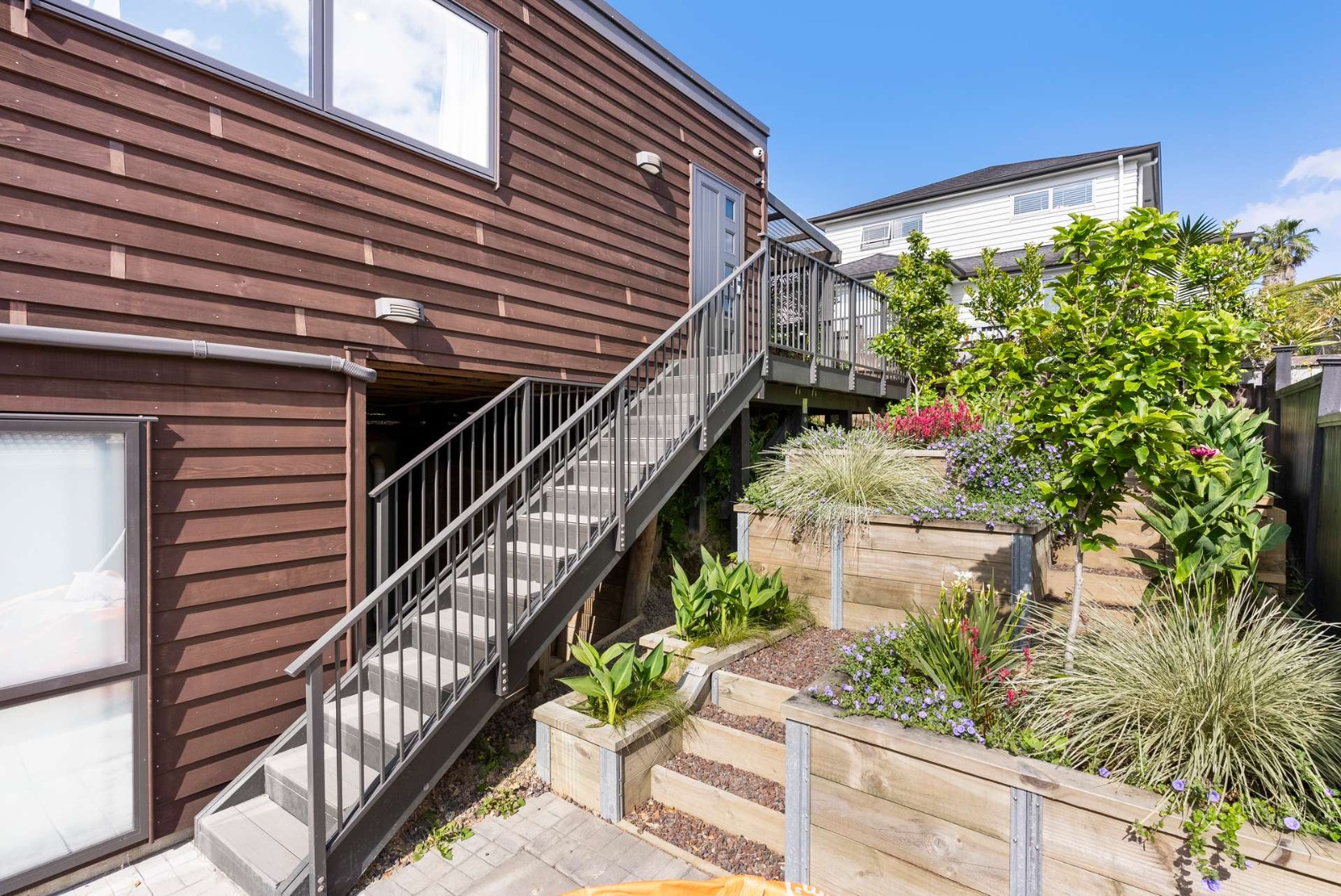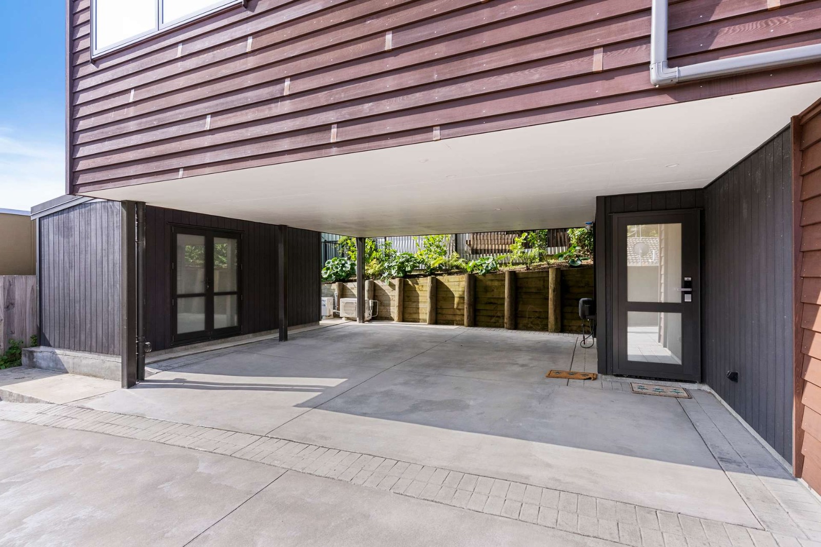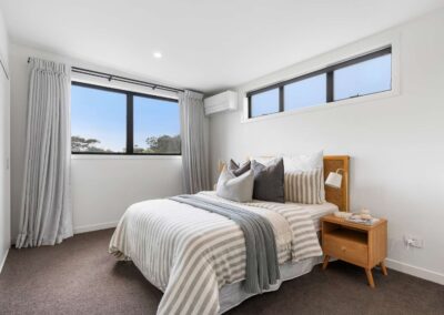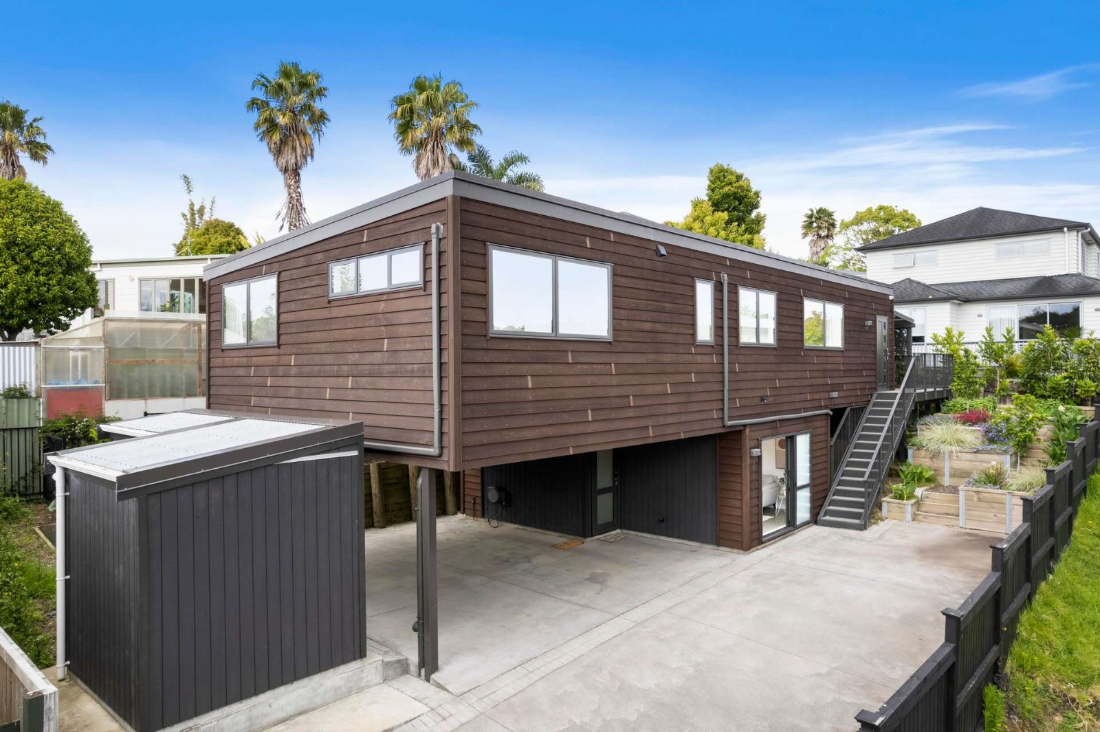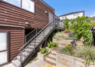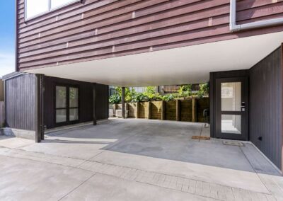 This new build in Totara Vale, Auckland incorporates simplistic traditional Cedar weatherboards to contrast a modern city lifestyle. This home was designed to maximise a tiny site while providing three bedrooms, two bathrooms, big deck, courtyard, shed and pergola for privacy. This home was a design and built project through Hybrid with collaboration of owners.